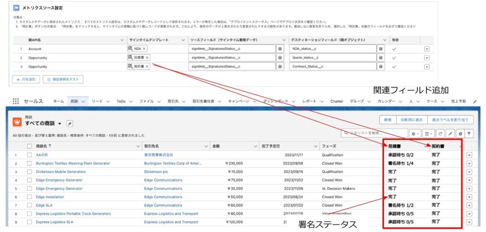 ▼サインタイムと連携したSalesforce画面:署名ステータスをリアルタイムで表示